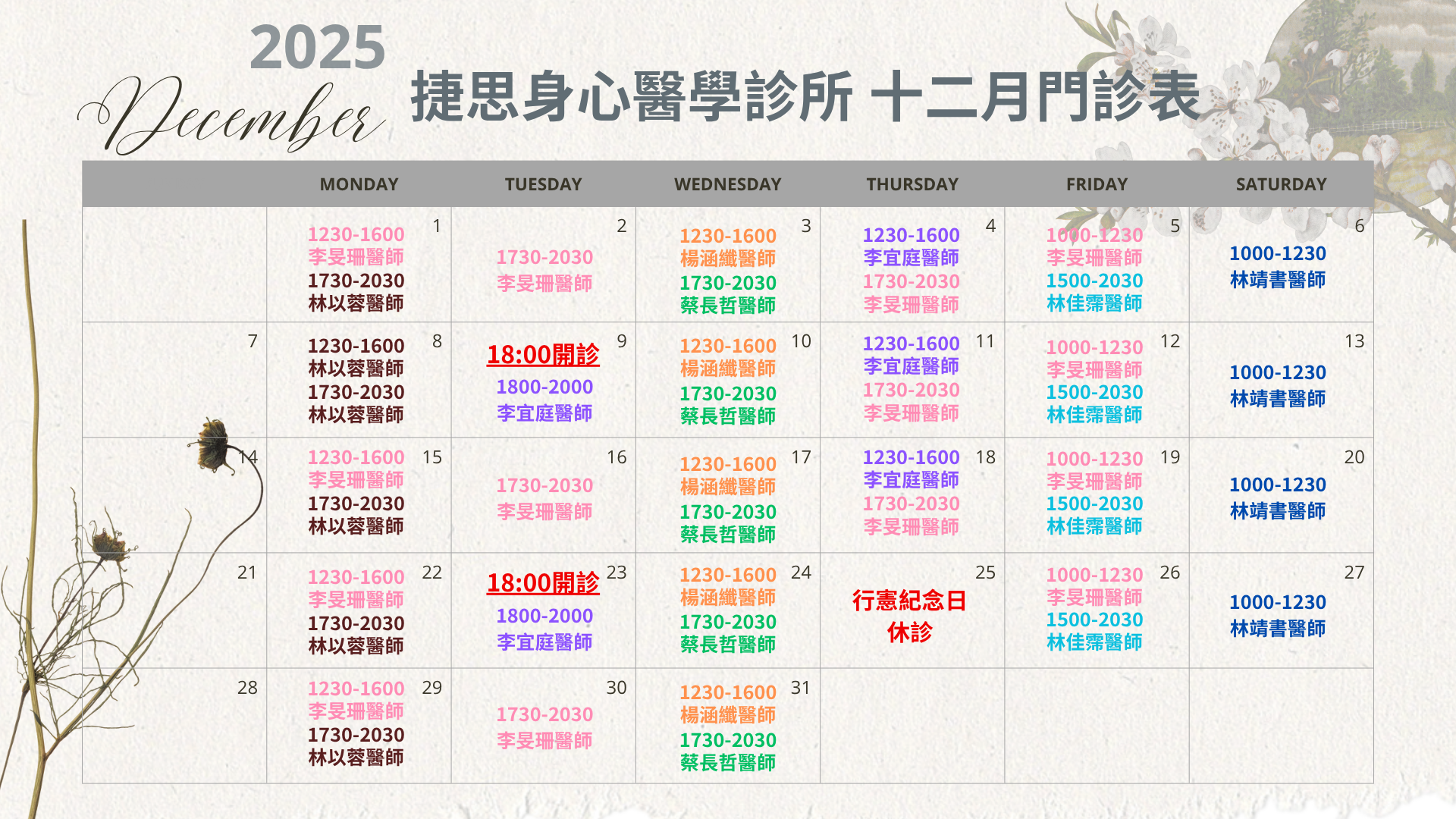 如果您正受焦慮、憂鬱、恐慌、失眠等身心狀況所苦,歡迎您到捷思身心醫學診所尋求協助,我們將竭誠為您服務。